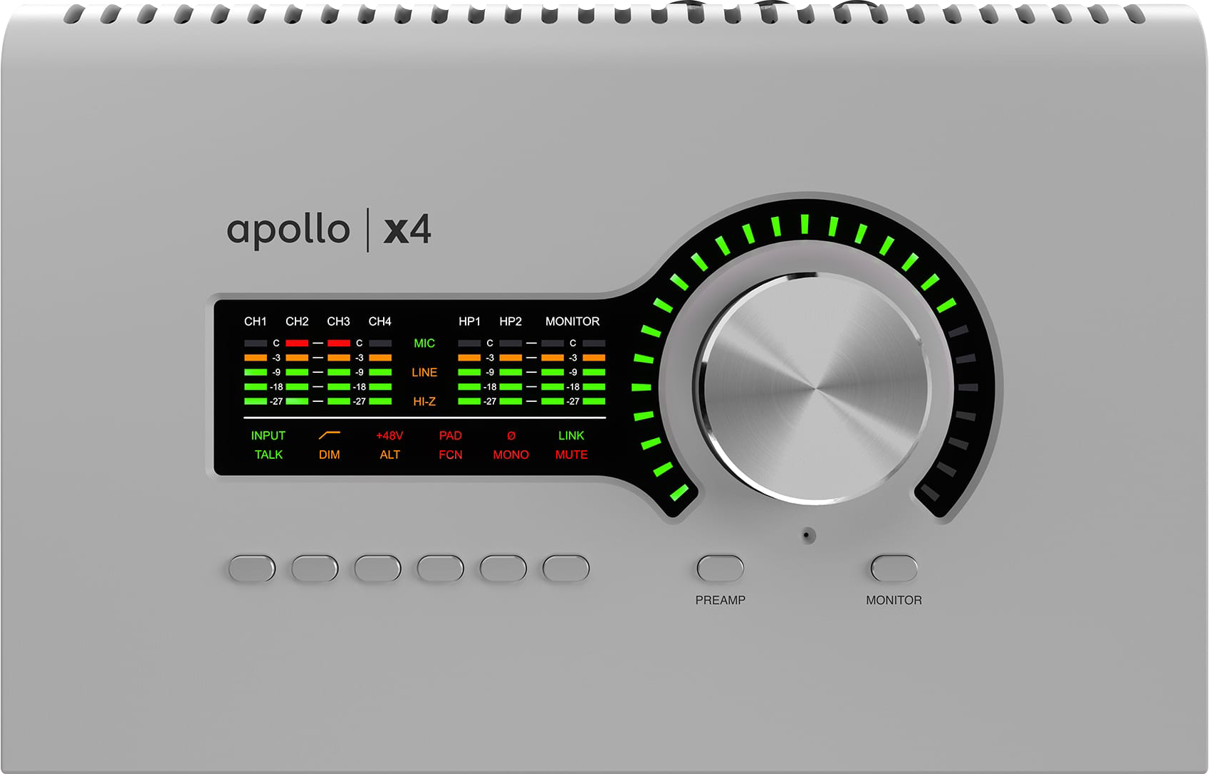 使用 UA 先进的 Apollo 聆听每一个细节。Apollo Twin x4 具有超高分辨率的音频转换、Unison™ 麦克风前置放大器和实时 UAD 处理功能(可让您通过 Neve、API、Manley、Auto-Tune 等插件进行无延迟录制),可将数十年来鼓舞人心的模拟工作室声音直接放在您的桌面上。
